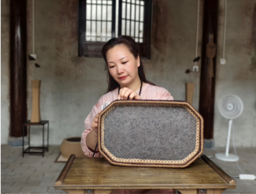 这份童年记忆里的“魔力”,让她长大后一头扎进麻绳编织的世界。她深耕双联结、双钱结、万字结等六种传统结法,更琢磨着为老手艺“添新”——将现代审美与周口地方文化符号融入技艺,开发出团扇、首饰盒、茶盘、手提包等百余种文创产品,让原本的“实用工具”,蜕变为承载生活美学的文化物件。