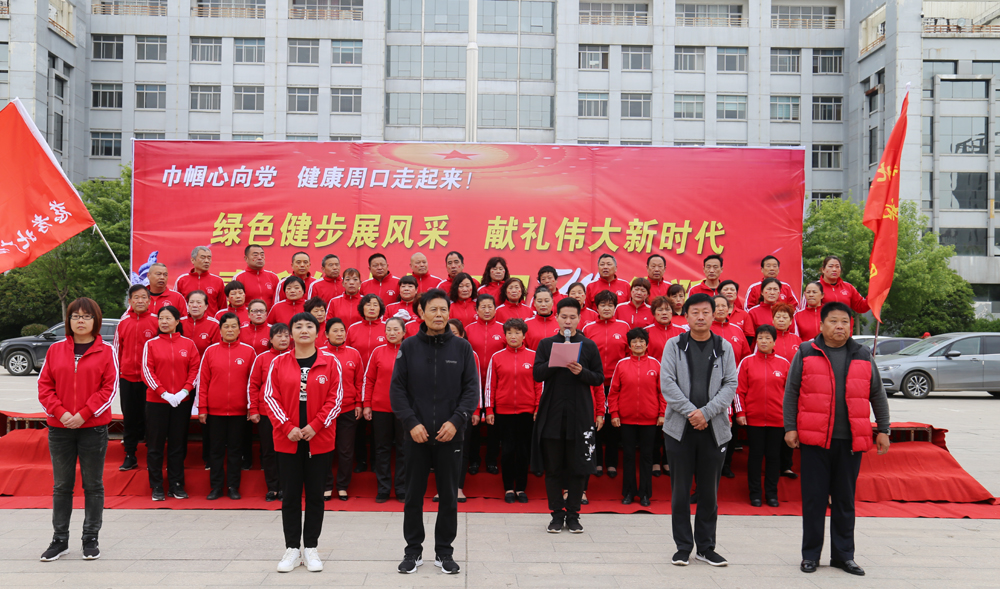 4月 月27日,我市举行的以“巾帼心向党 健康周口走起来”为主题的绿色健步展风采、献礼伟大新时代活动在川汇区行政新区举行。