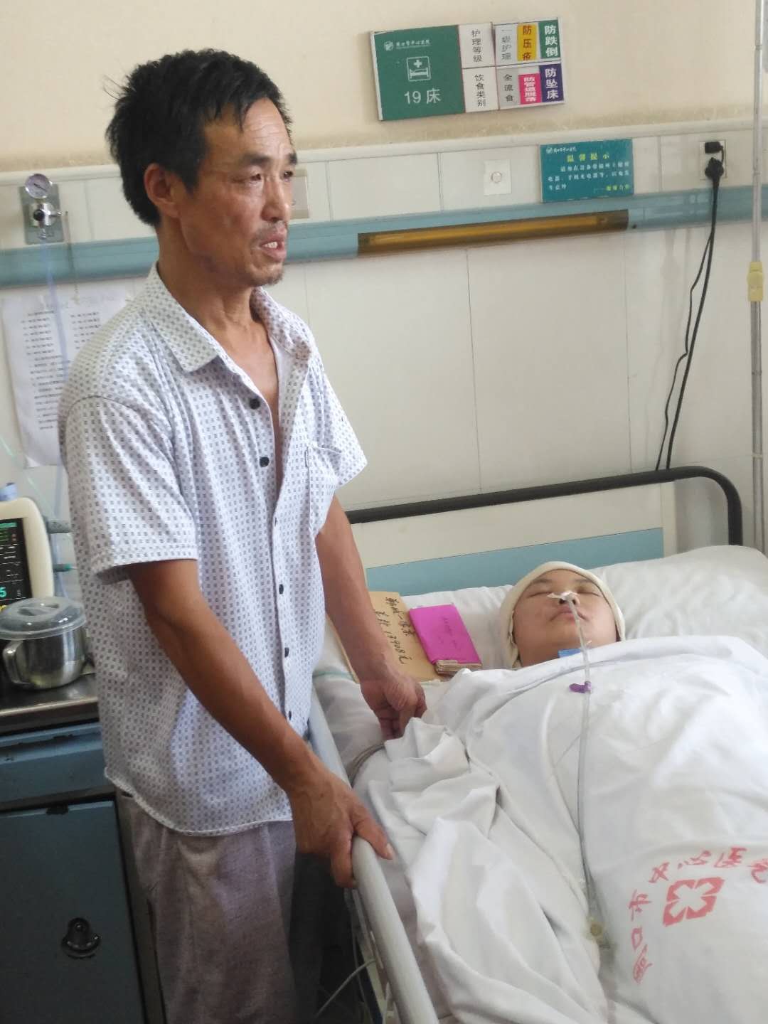 “真的太谢谢你们了,是你们给了俺家闺女。。。。。。”王倩文的父母哽咽的拉着前来医院看望的志愿者们的手。